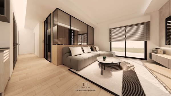 隔著一片半透明的玻璃,那裡是他的設計工作區,
